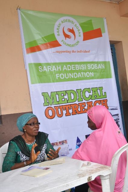 World Health Organization(WHO) and other renown organizations hold that the world is fast losing the health battle to deadly and chronic diseases, Sarah Adebisi Sosan Foundation also commits in supporting the reduction of these chronic diseases by providing free healthcare for the rural riverine communities across Lagos State Nigeria.The outreach was supported by May and Baker pharmaceuticals and Sankin Ltd manufacturer of Lady Care Sanitary towels.
